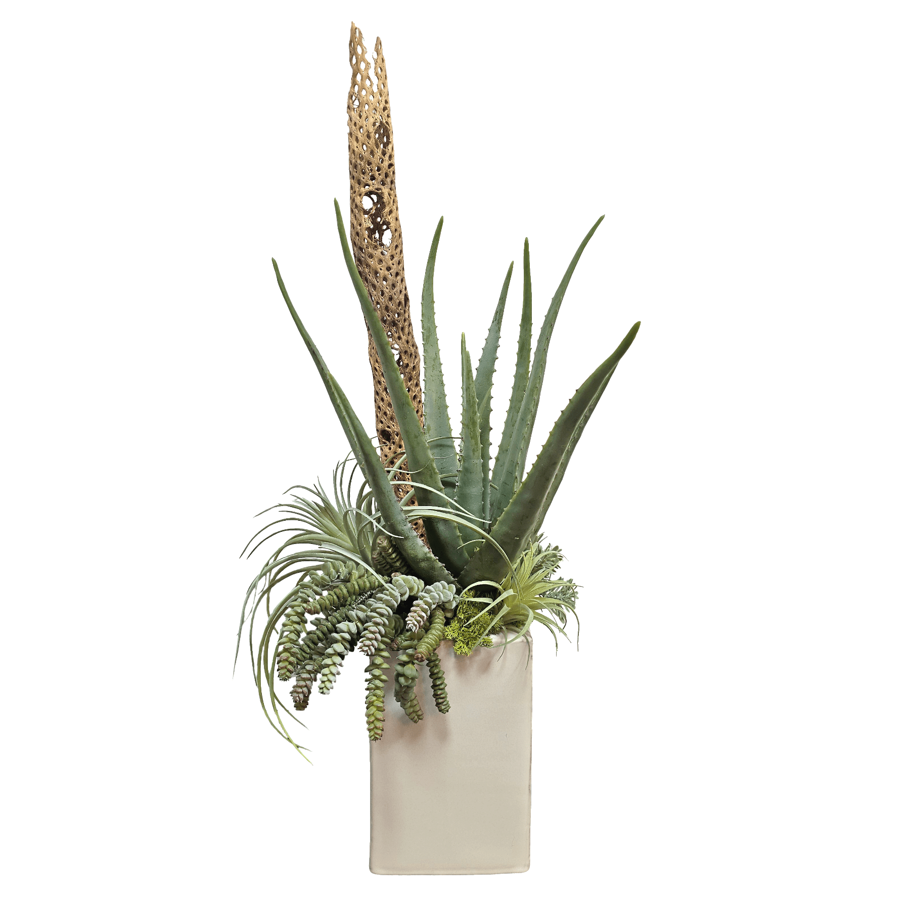 Type: Large Aloe, Tillandsia, Burro Tail, and Kalanchoe with Cholla Wood