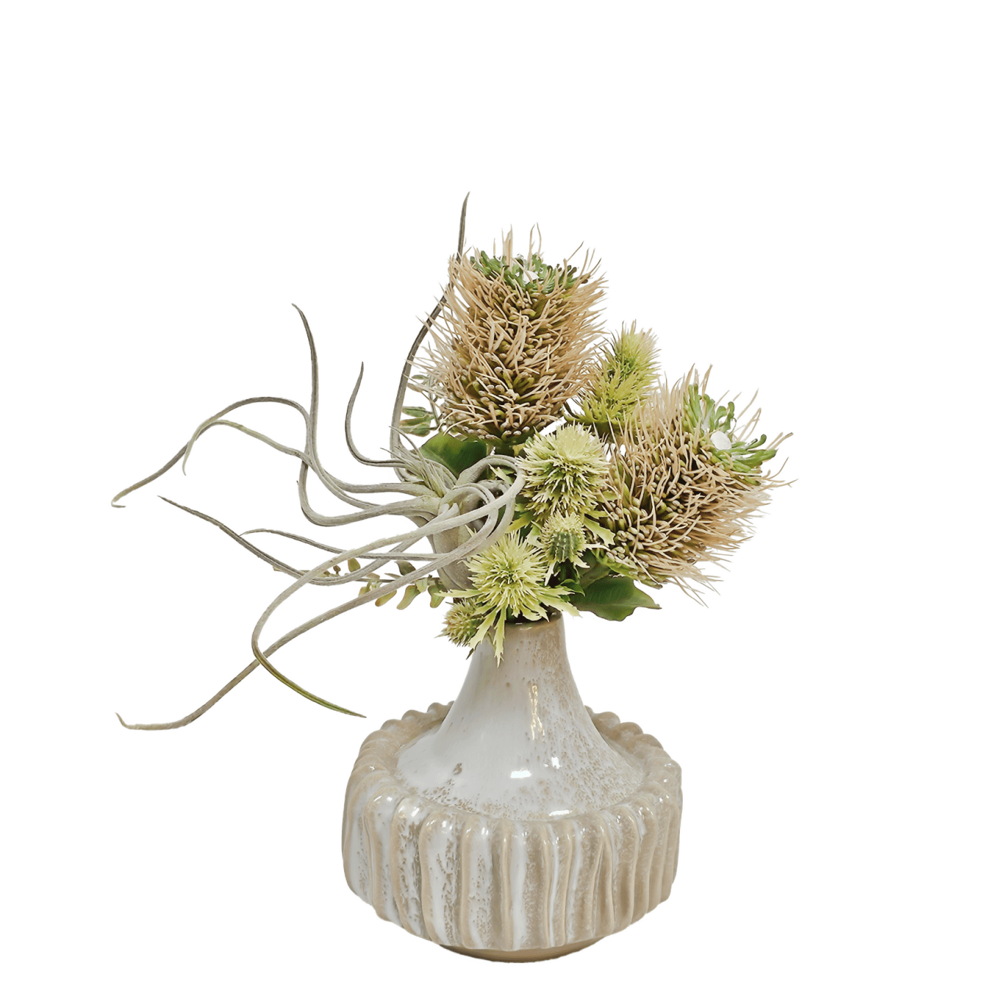 Banksia, Thistle and Tillandsia in Ceramic Vase 13"H - LDF Silk