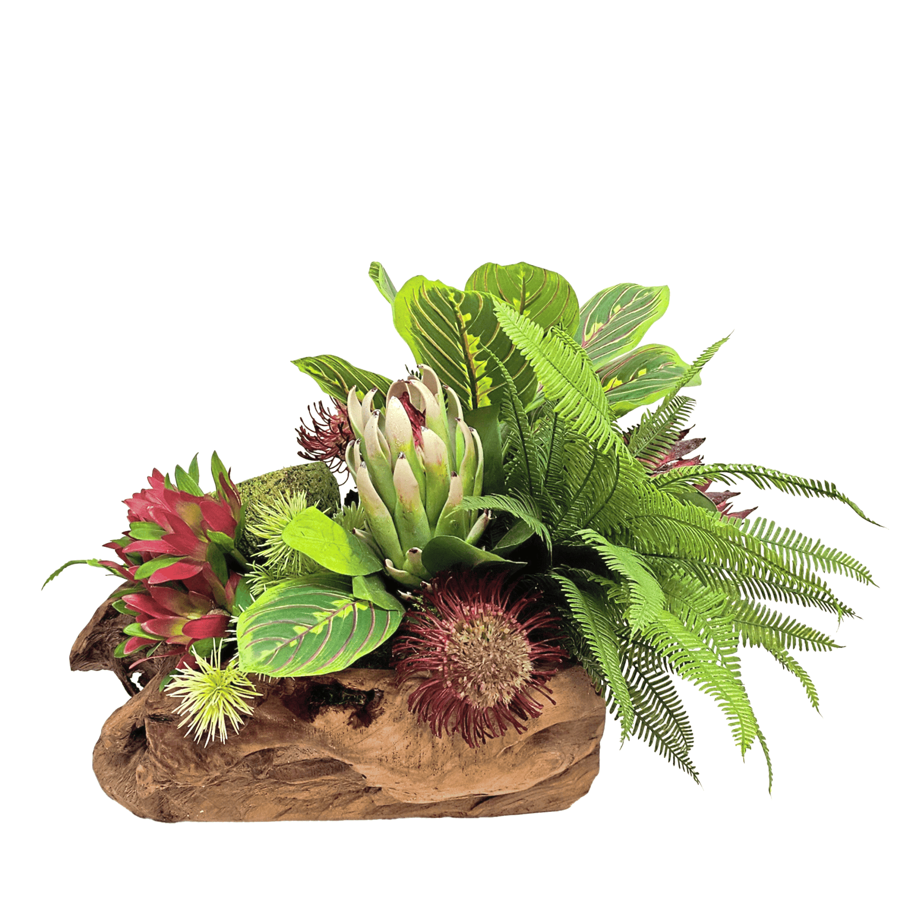 • Type: Mixed Sized Protea, Coconut Pod, Spiney Spray, Peacock Plant with Deer Ferns