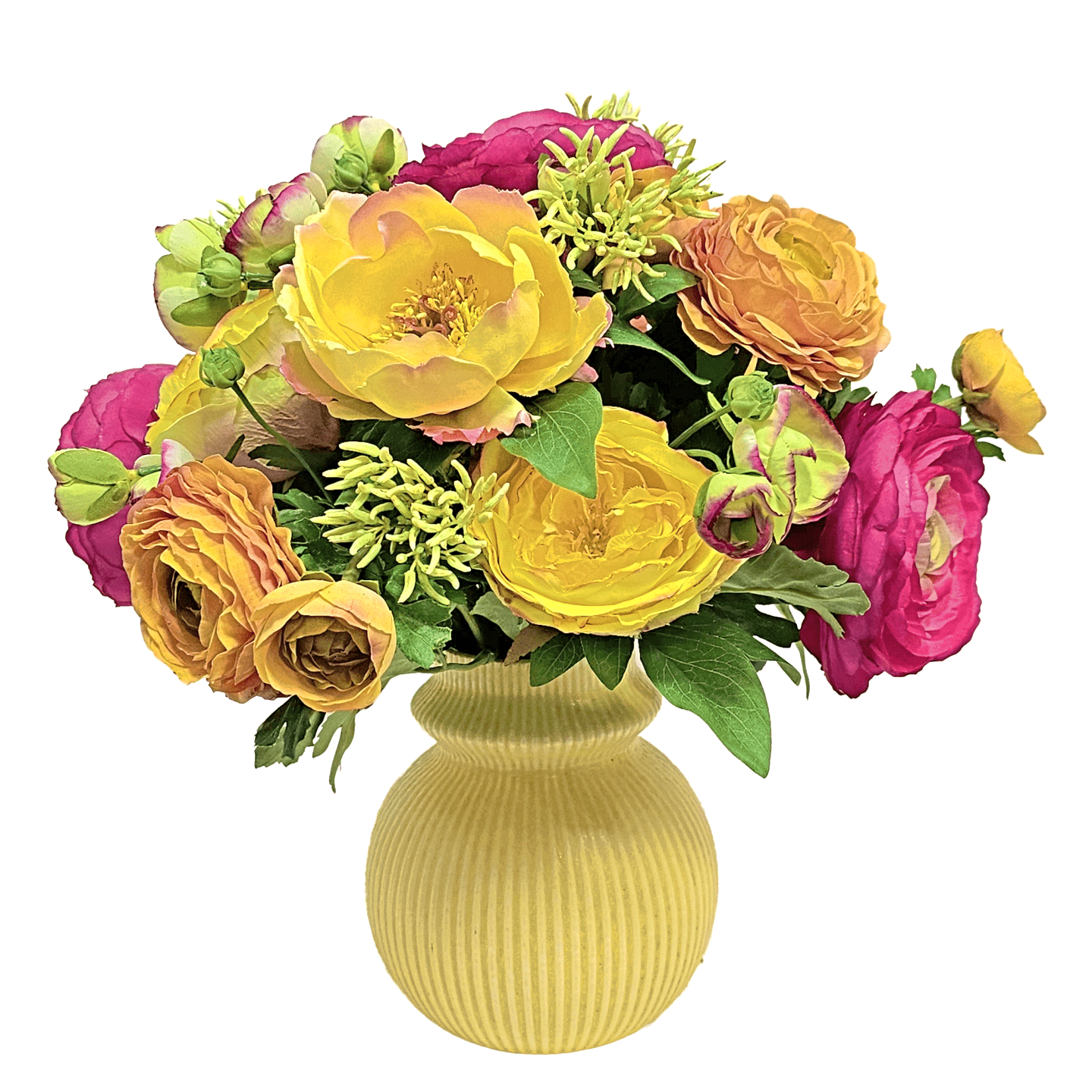 Ranunculus, Peonies and Dogwood Seed in Vase 16"H - LDF Silk