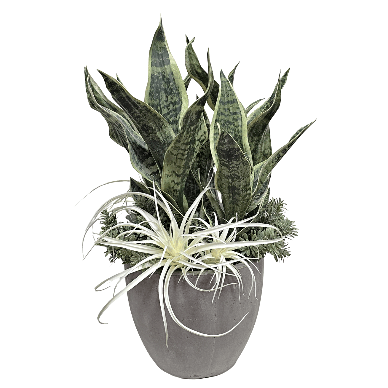 Sansevieria, Tillandsia and Sedum in Concrete 27"H - LDF Silk