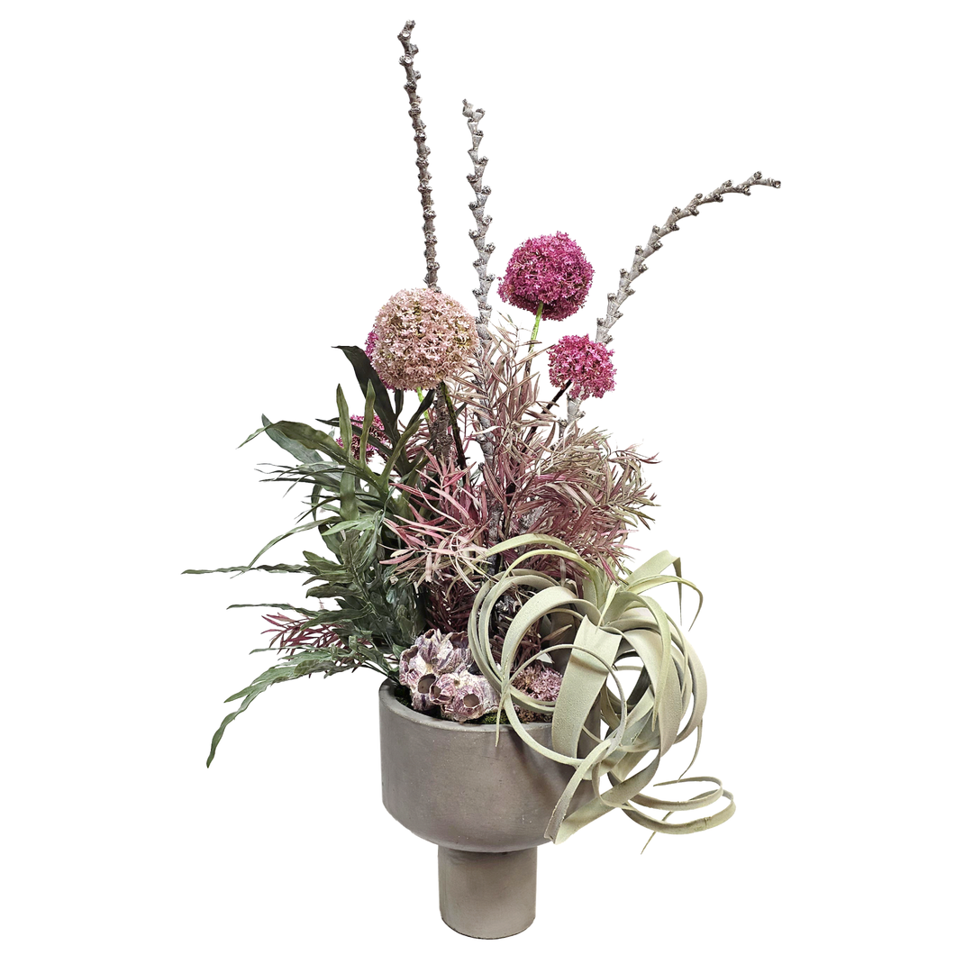 Hydrangea, Allium, Protea, Berries and Spikey Thistle in Aged Ceramic 20"H