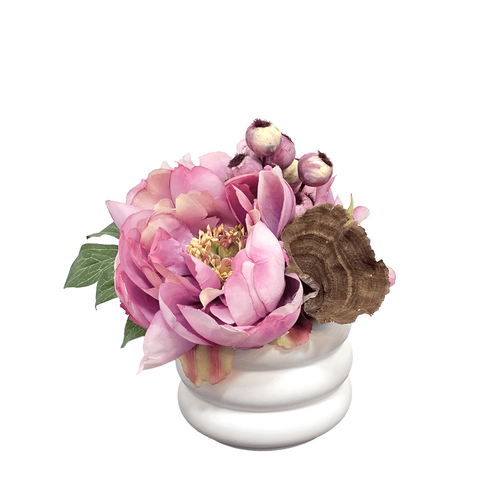 Peonies with Berries and Calice in Ceramic 9"H - LDF Silk
