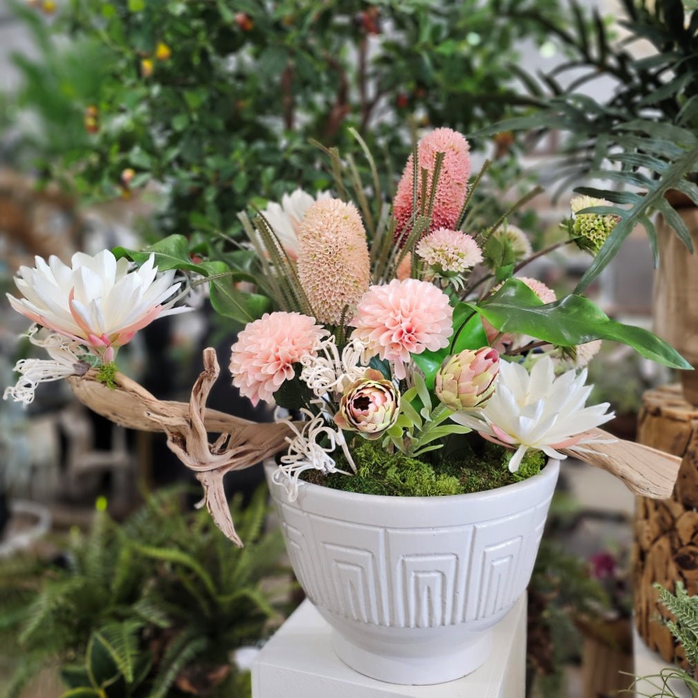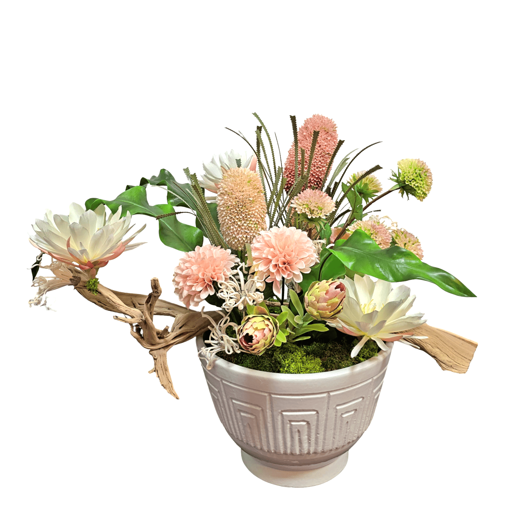 Type: Ghostwood with Queen of the Nigh Flowers, Dahlia, Protea and Banksia with Tropical Leaves